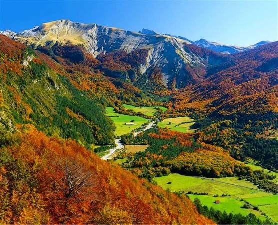 Desde aquí parten senderos para todos los niveles: suaves paseos por el hayedo, travesías por el VALLE DE RONCAL, y rutas exigentes como la subida a la MESA DE LOS TRES REYES. En invierno, la nieve cubre el camino y transforma el paisaje. Cuando nieva suficiente, las pistas de esquí de fondo llegan hasta la misma puerta del bar.